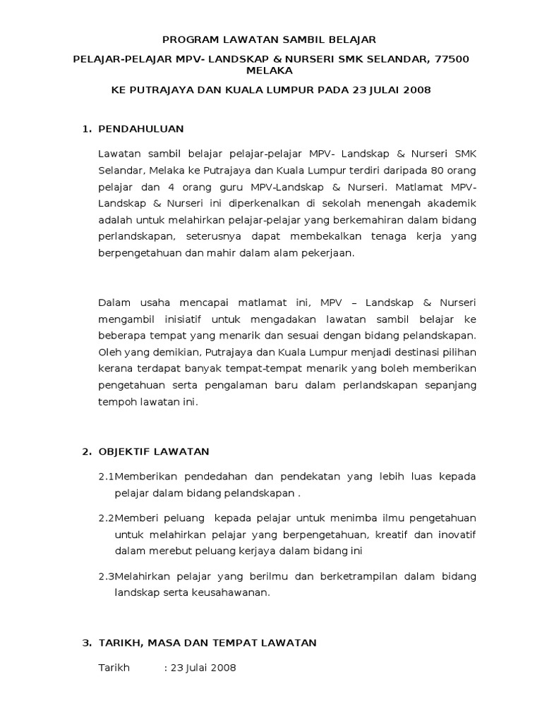 Contoh Kertas Kerja Lawatan Sambil Belajar Ke Putrajaya Pdf